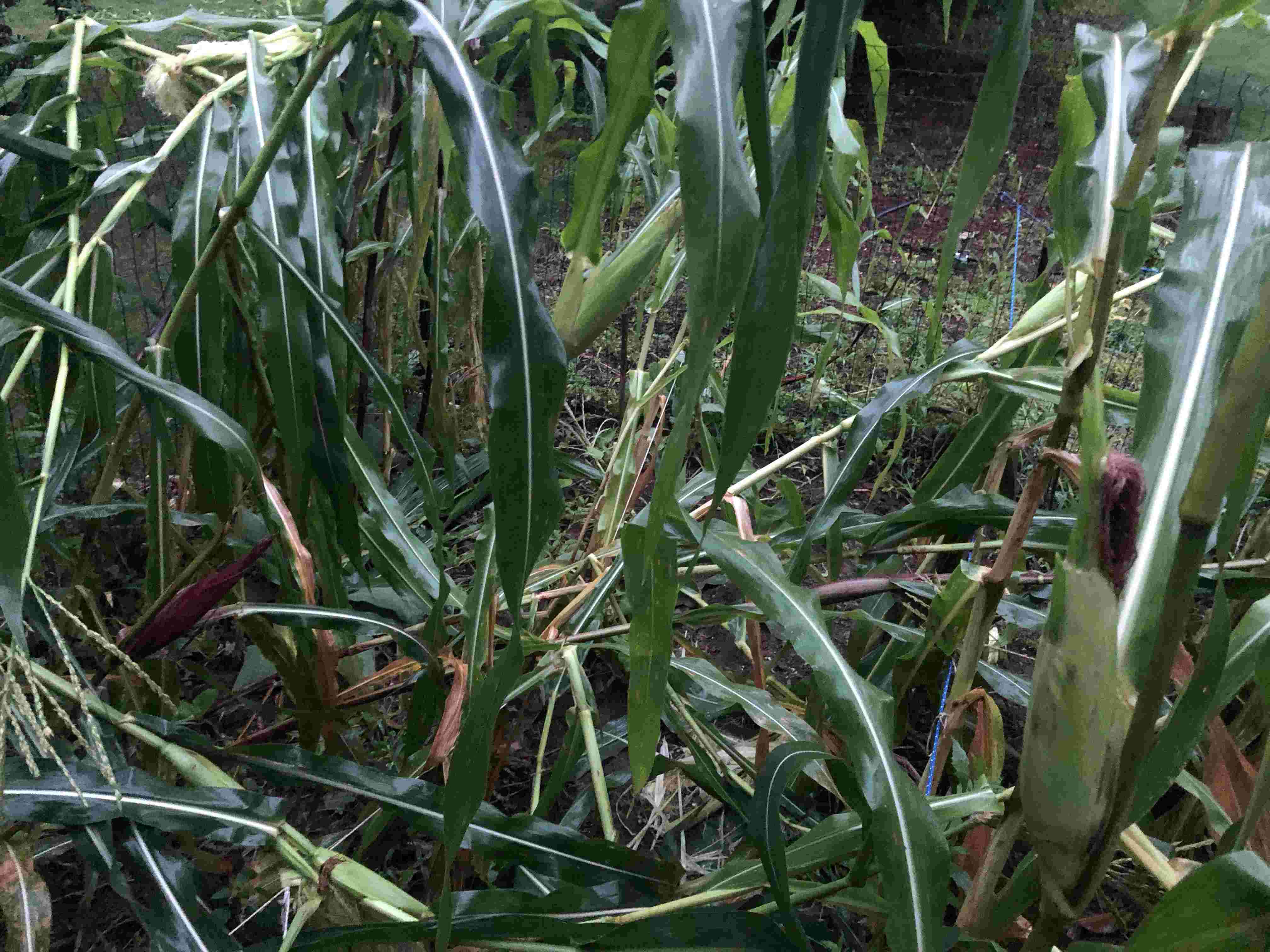 2019-04-28- Planted Sugar Enhanced Hybrid2019-05-20- Planted Indian Ornamental Corn2019-05-25- Planted Organic Sweet Corn2019-07-06- My corn appears to have been nutrient defficient - as told by the yellowing of the bottom leaves. I applied a45-0-0fertilizer in between rows directly before a rainstorm. info.2019-07-14- Tassels Emerged (SE Hybrid)2019-07-16- Silks Emerged (SE Hybrid) R1 Stage2019-07-17- After major storm most of the corn was blown over. Used stakes + ropes to tie them up and support growth. Roots do not appear to be as strong as they should be, possibly due to shallow planting2019-07-19- Pollination has begun (SE Hybrid)2019-07-21- Ear Count: 155 (SE Hybrid)2019-07-21- Noticed first tassels (Organic corn)2018-07-21- Discovered Eurpoean Corn borers consuming two stalks.2018-07-26- SE Hybrid ears have entered the R2 Stage2019-08-05- Organic Sweet corn has entered R1 Stage2019-08-16- Organic Sweet corn has entered R1 Stage
