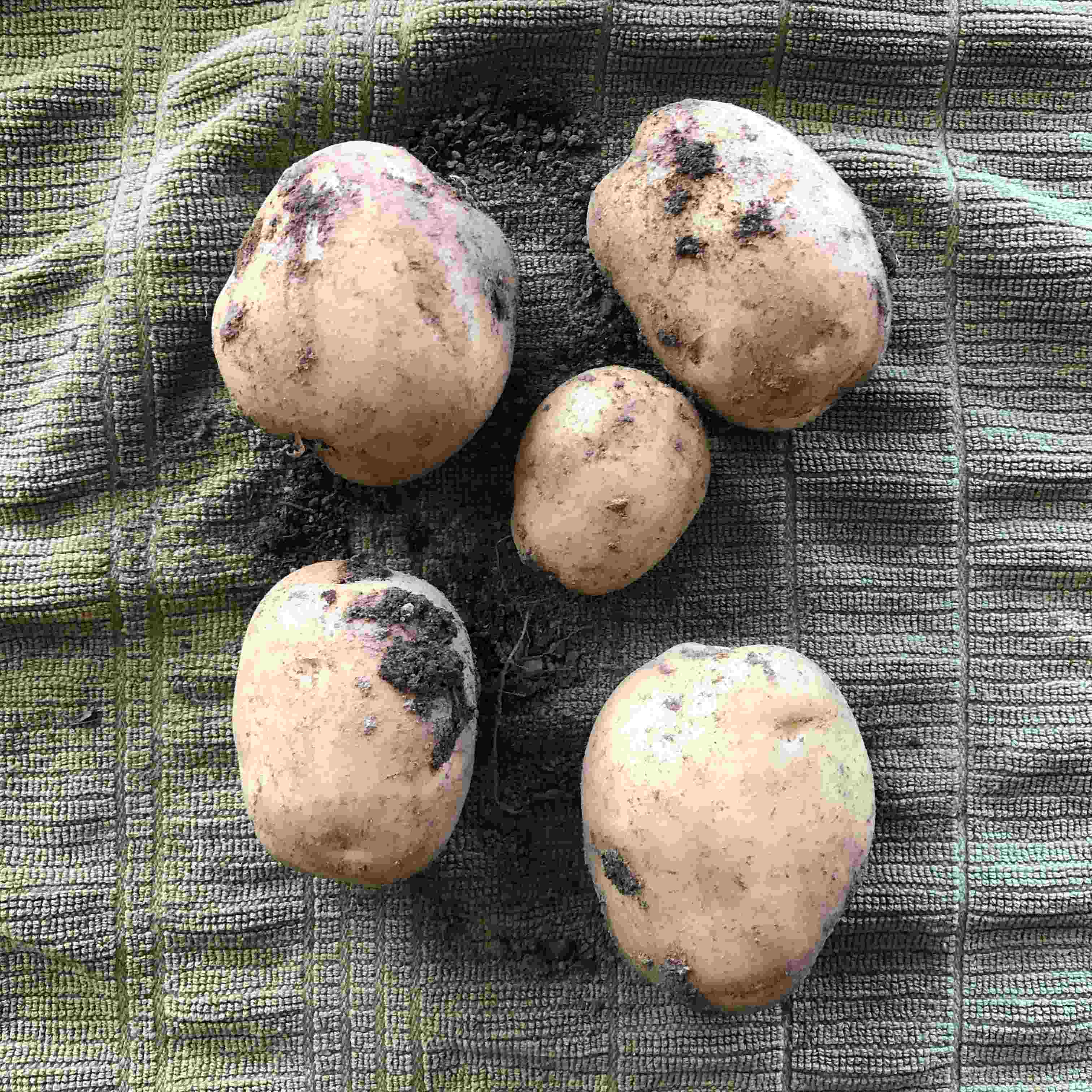 - White Mold / Sclerotinia stem rot - A white mold that grows on the stem of the potato plant just below the soil. see also