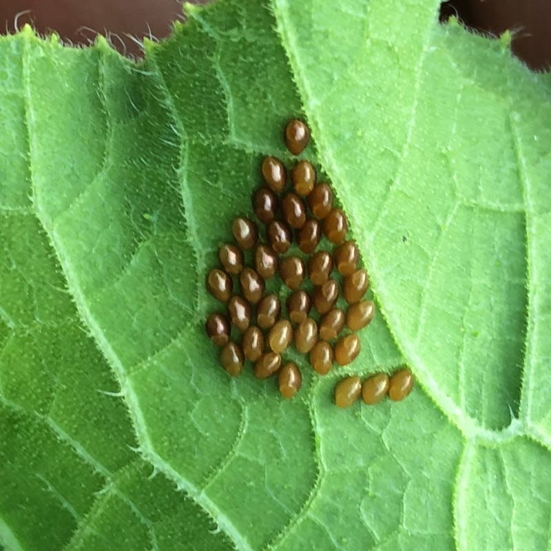 - Their eggs are small golden brown dots that appear on the undersides and tops of leaves. These can be destroyed by removing the part of the leaf (which will damage the plant) or by removing them with duck tape. Crush them between your fingers until they pop to ensure they won’t hatch.